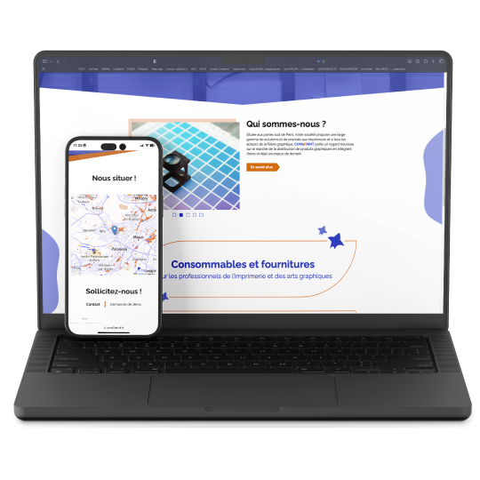 Com2print n’avait qu’une page HTML sans interaction et très peu référencée datant des années 2000. L’entreprise souhaite se doter d’un site web vitrine regroupant les infos clés et utiles aux futurs partenaires, facile à utiliser et qui propose une prise de contact facilitée à ses prospects.