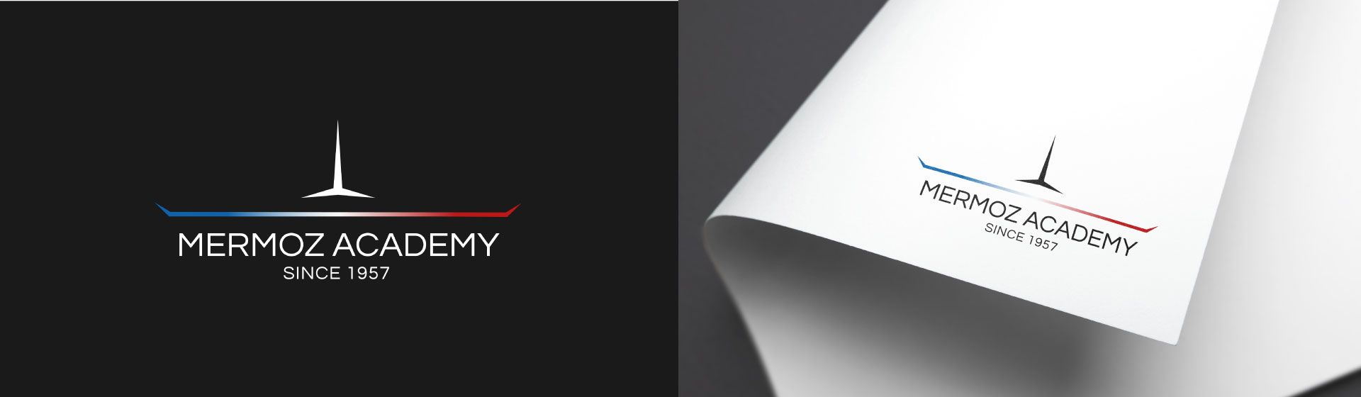 Dans ce travail d'identité graphique, ce sont les valeurs et les origines de l'École MERMOZ ACADEMY qui sont portées.