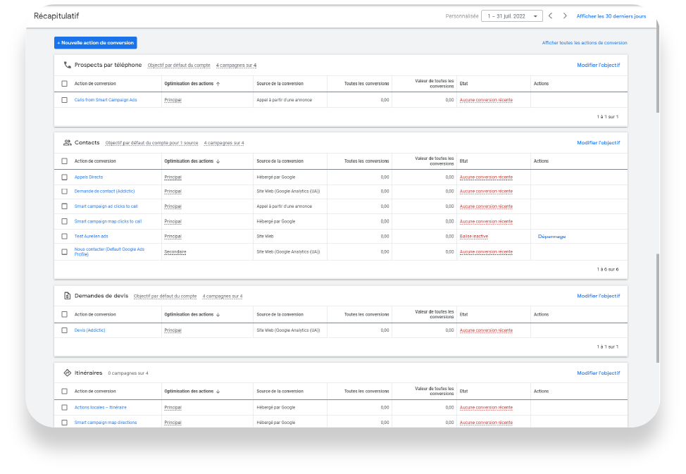N’oubliez pas de valider votre conversion côté Google Ads également. Si au bout de 12 heures la balise n’apparaît toujours pas active dans le tableau récapitulatif des conversions Ads, vous pouvez suivre la procédure « Dépannage » pour forcer la détection.