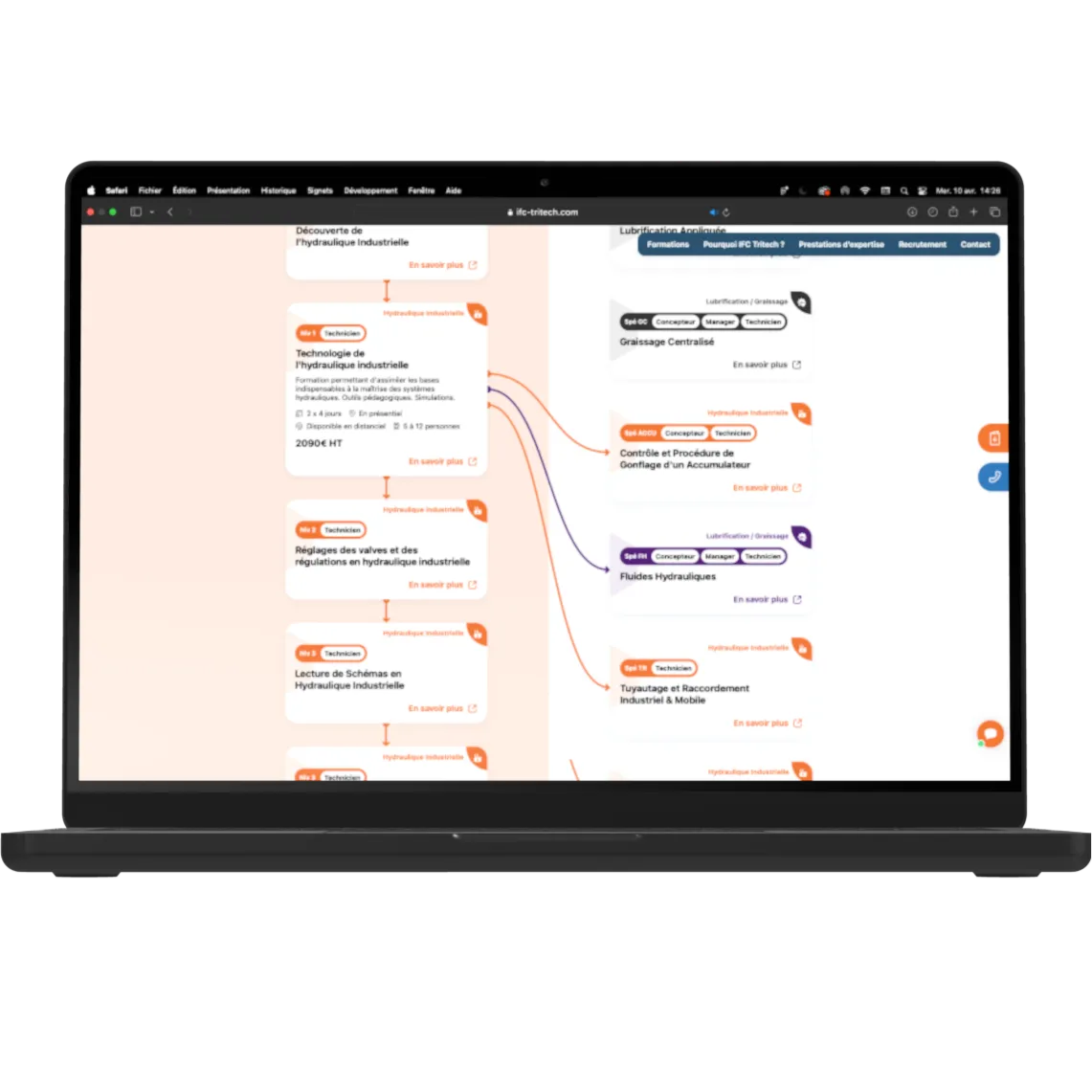 Depuis leur intégration au groupe EFA, IFC et TRITECH se sont unifiés pour offrir des formations professionnelles spécialisées en systèmes hydrauliques, électriques et hydrogène. Dès 2025, cette fusion sous la bannière IFC TRITECH renforcera leur position sur le marché. Avec une quarantaine de formations réparties en six catégories, IFC TRITECH répond aux besoins des entreprises en proposant des programmes sur mesure, dispensés en français et en anglais, en présentiel ou à l’international. Des outils pédagogiques modernes, comme des bancs de simulation, garantissent une formation de qualité.